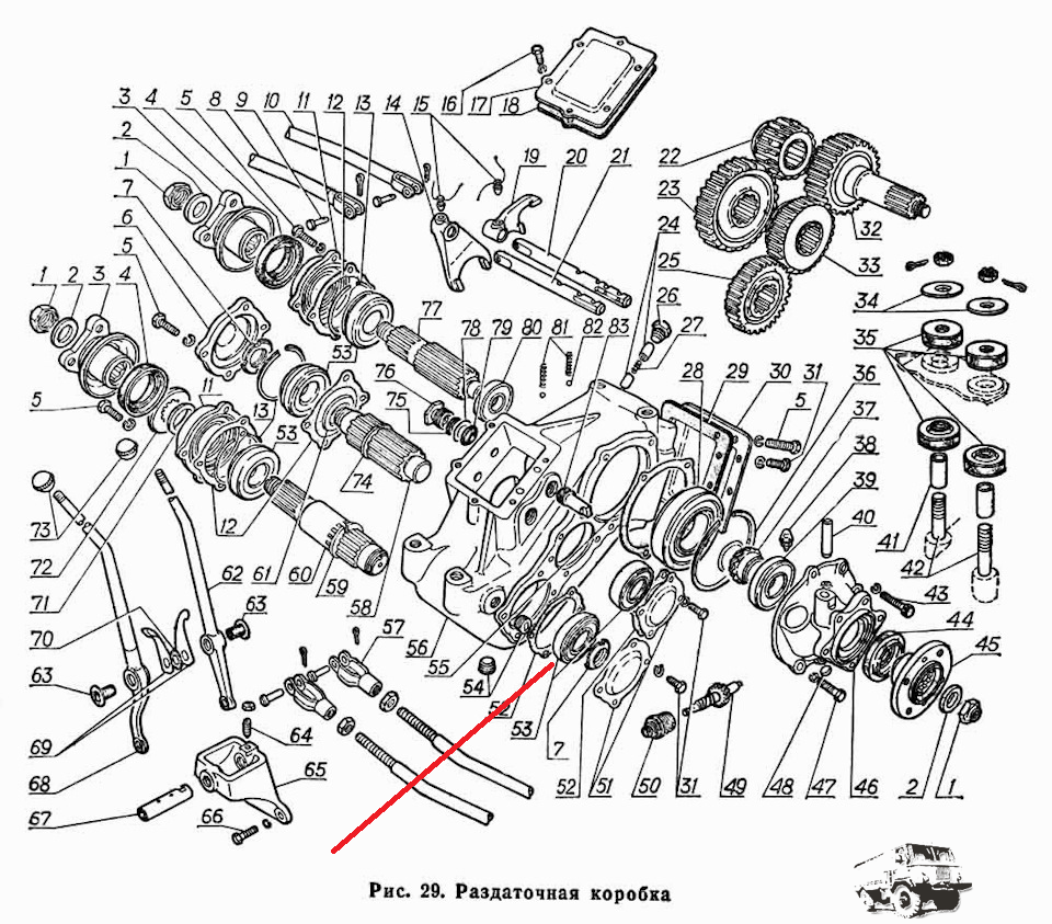 Скажите в раздатке вал привода переднего моста задний подшипник (ГОСТ-307 ISO-6307) -на картинке красная линия,
