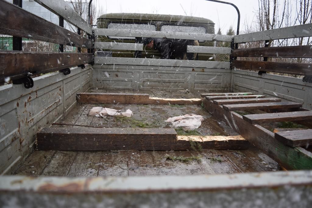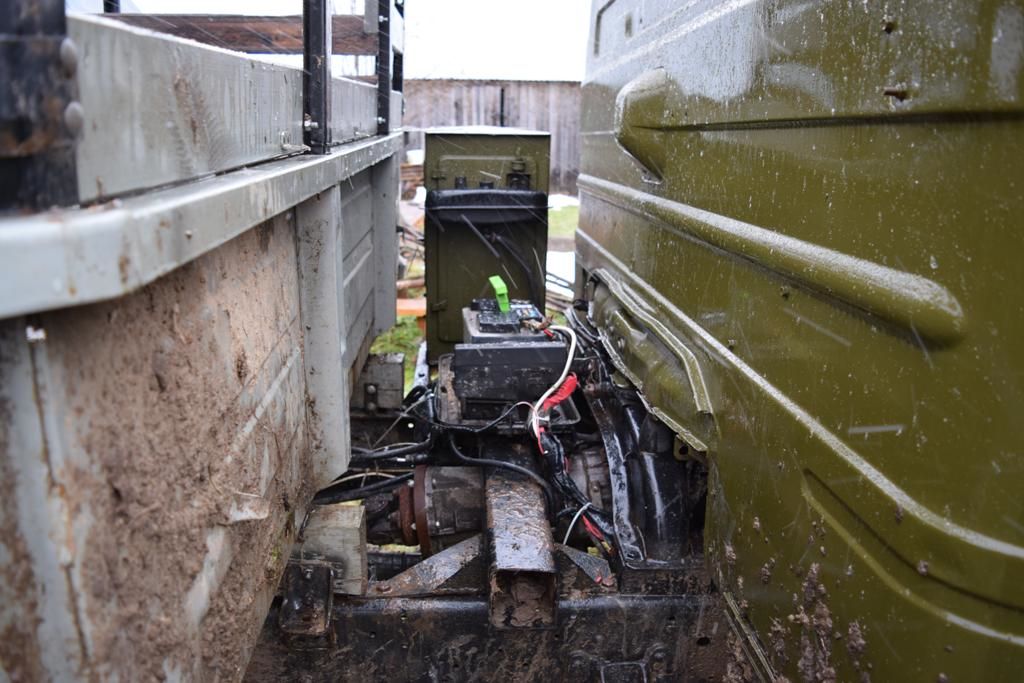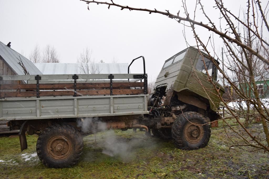 Автомобиль имеет свеже покрашенную из балончика кабину со сквозными дырками в полу и бортовую платформу от 3308