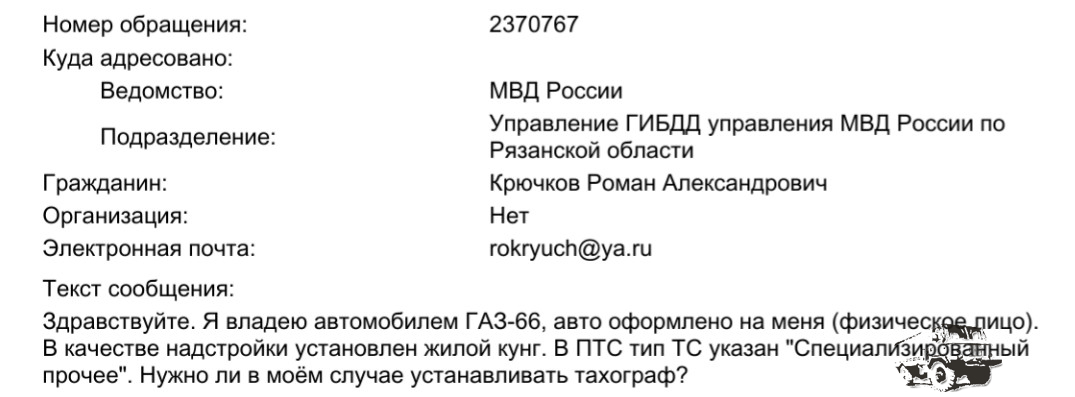 Задал вопрос МВД по поводу ГАЗ-66 с типом ТС "Специализированный прочее"