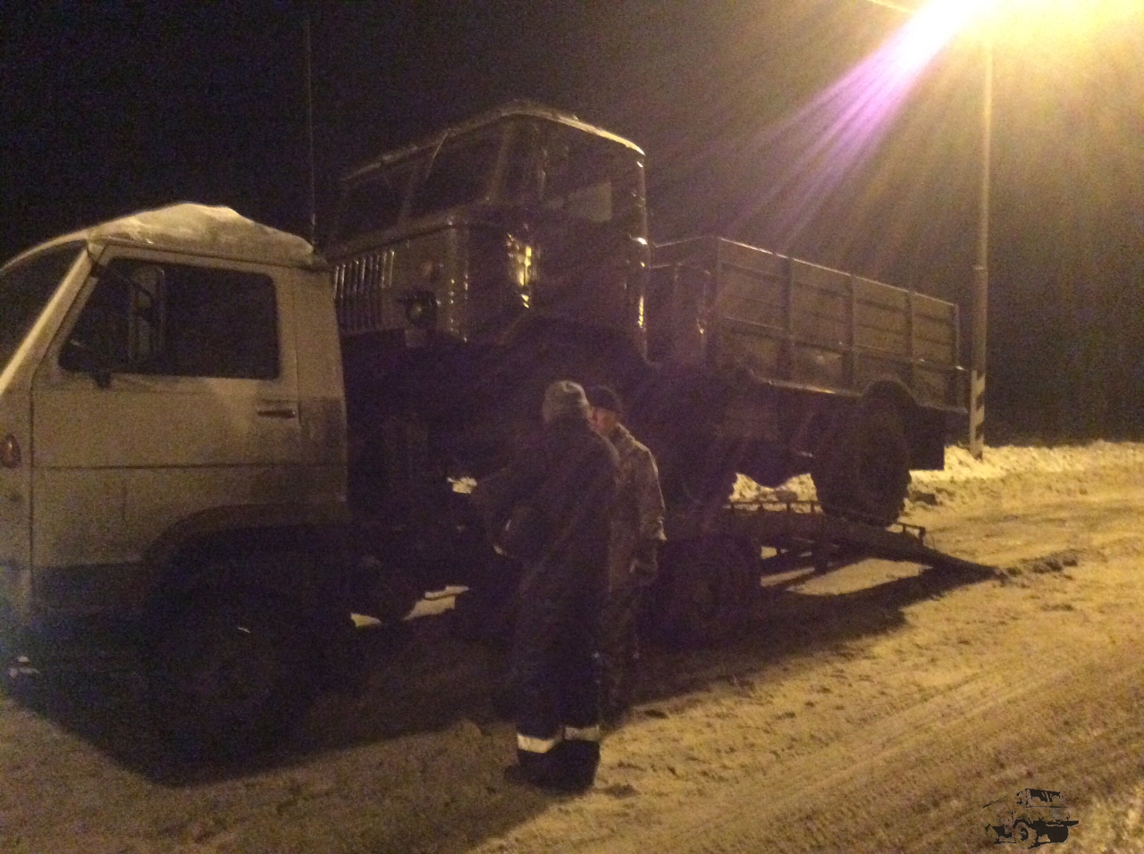 Как на зло, Урал стоит без кардана. Но как хорошо, когда есть друзья в соседней деревне с Камаз 4310
