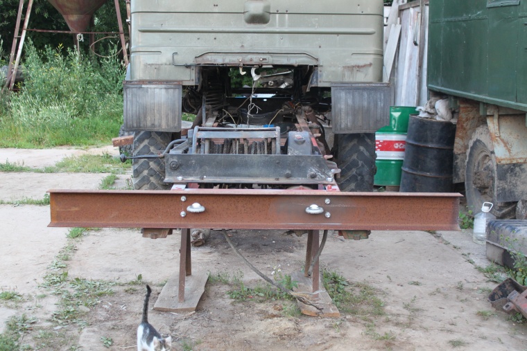 Установить рессоры оказалось очень веселым развлечением.Выручил свой же погрузчик,ковшом надавил на заднюю часть и встали как родные.Уже не тепится примерить лаптежные колеса
