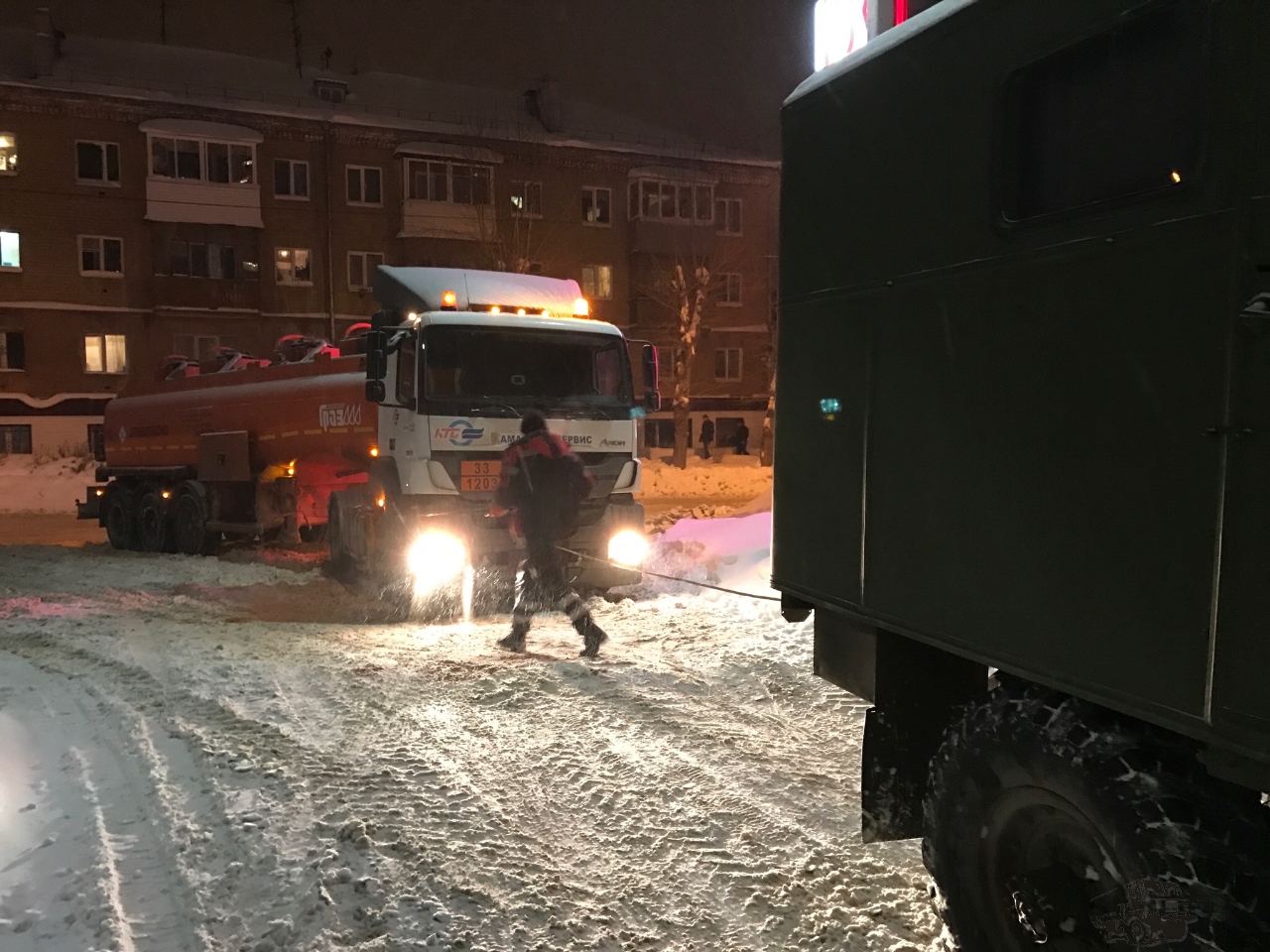 Я как-то бензовоз затягивал на АЗС, они ж все шоссейные, одноосные, да и снег у нас особо не чистят