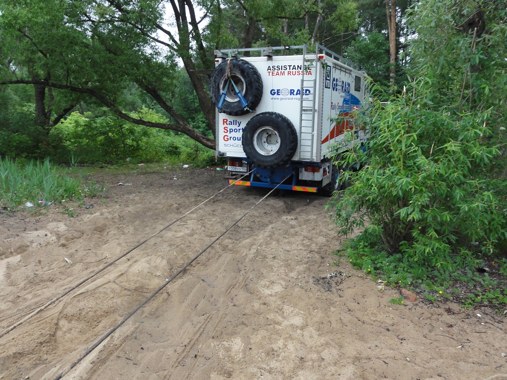 Если засадить татру то только через блоки тащить , один блок есть буду докупать ещё два . Бтр было сложно сдернуть он утонул хорошо покапав и "присосался" днищем с рывка трос рвался как верёвка, да и сам начал закапываться в песок еле выскочил на блокировках на твердый грунт.