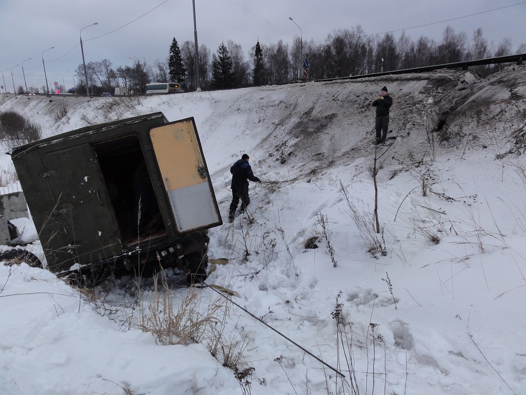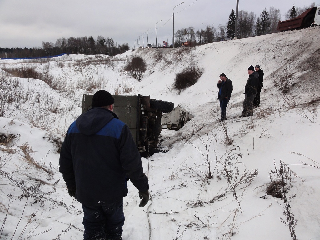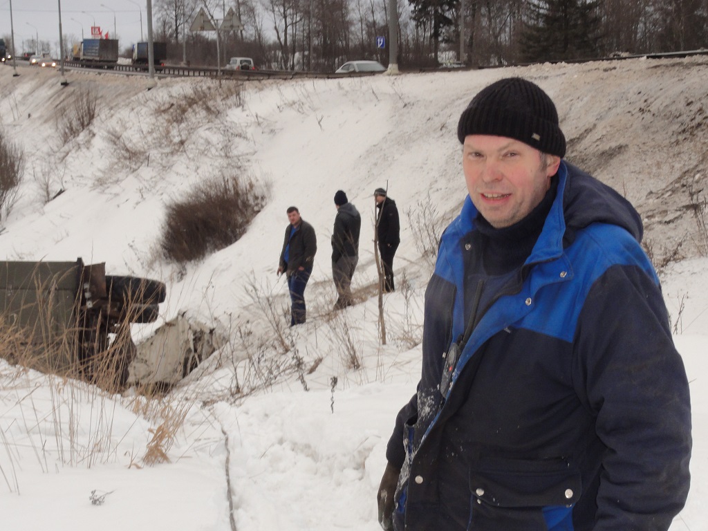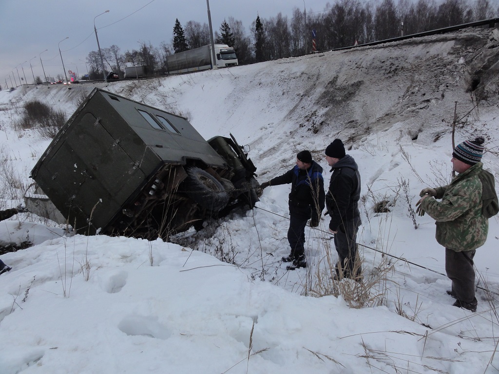 Сегодня ребята гнали 66 ставить на учёт при под езде к Солнечногорску на Ленинградке попали в ДТП и улетели через отбойник в овраг. Харли увидел , проехать мимо не смог и началась практически военная операция ,Папуся прибыл на место на Урале с блоками ,удлинителями , цепями и процесс пошёл .Позже прилетели на 66-х Камазенок и Джеки короче ребята отпишутся сами из меня писатель не какой выкладываю фото.