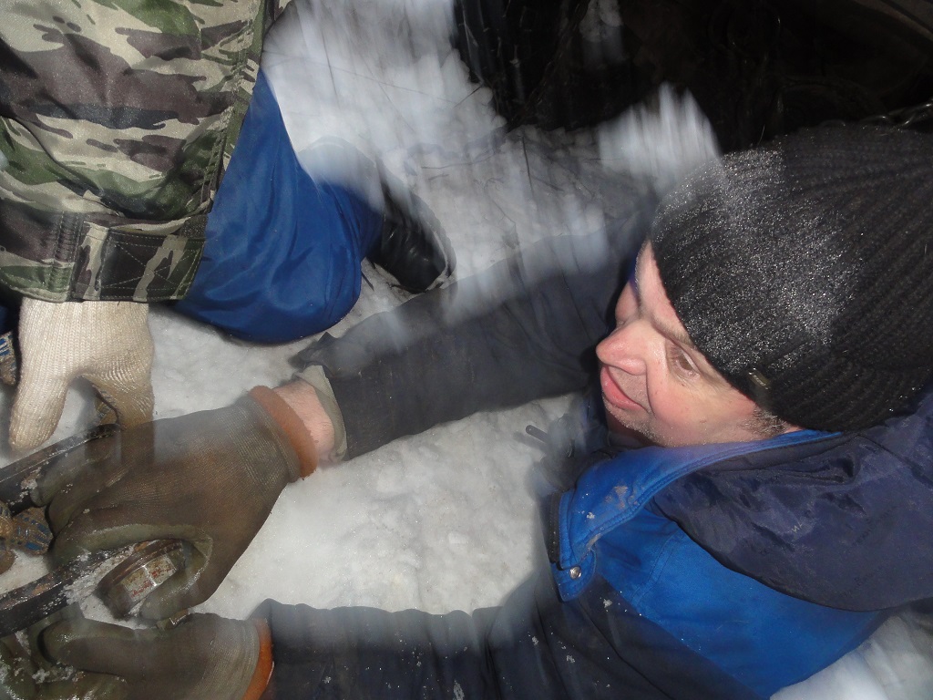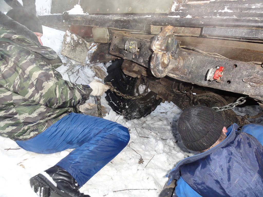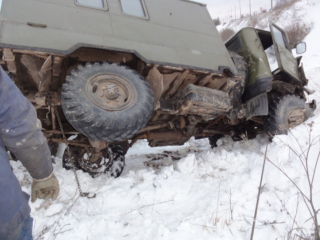 .дело было так. камаз гружёный дровами под завяз (30 складометров)провалился одной стороной задней тележки в яму.гружёный 66 вытянуть его не смог.но так как я ему недавно установил лебёдку в зад ,с приводом от кома на раздатке .он не долго думая цепляет камаз и начинает тянуть.Но так как разница в весе примерно 1 к 3 в пользу камаза ,шишига начинат к нему ползти.Вследствие чего ,хозяином принято решение просто привязаться к дереву .Привязались.Начинают тянуть,но как и следовало ожидать ,рвётся родной трос.Его связывают ,но без результативно.В итоге порвав его весь решают привязать к лебёдке буксировочный трос от камаза (20 мм).Начинают тянуть ,херакс, редуктор лебёдки в лахмотья