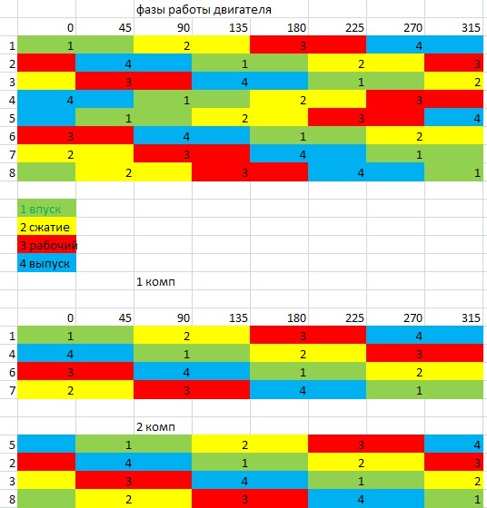 Я табличку в Экселе накидал . Сверху фазы нашего двигателя , снизу разбивка на 2 .
