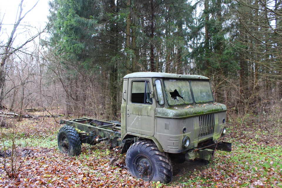 Автомобиль с пробегом 9км.простоял на этом месте 23года.в землю врос изрядно,.