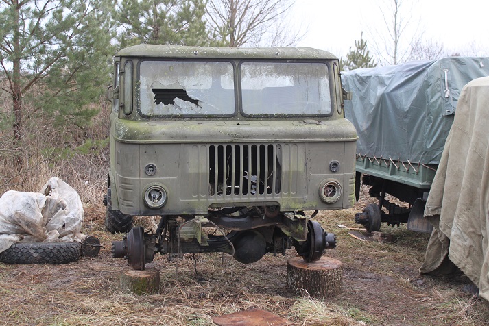 восстанавливать буду этот газ 66,он реально новый(хозяин говорил что пробег 9км),несмотря на устрашающий вид от мха)))такого состояния рамы и кабины я не встречал,все в родной краске,рессоры сохранили консервационную бумагу.выпуск 1978г,все 38 лет авто стоял под открытым небом.панели кабины несъемные,крепления кабины отличаются от более поздних 66х
