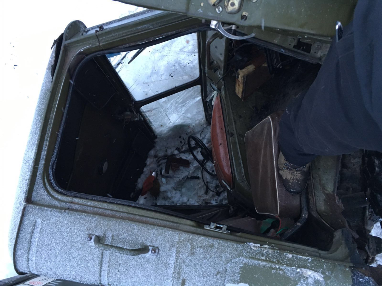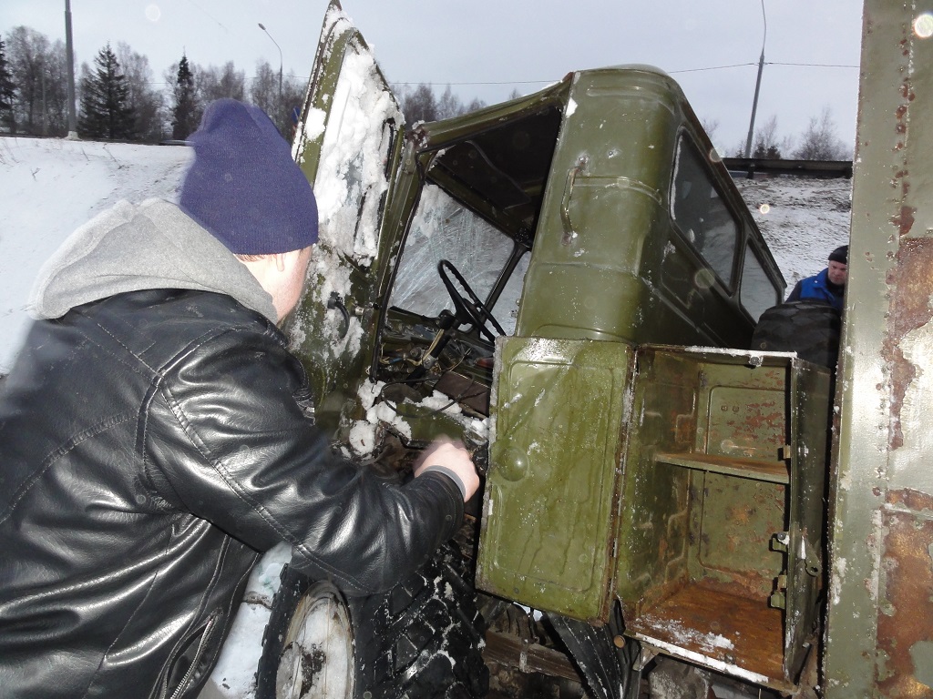 [ref]ПОМПАТЕХ[/ref], можно было и ходовую протянуть - благо удобно и согреться... потом все одно в разбор. Повреждения по рулевой, по раме, кабина чуток под пресс, малость руль свернут. Короче огонь-тачка, сел - поехал