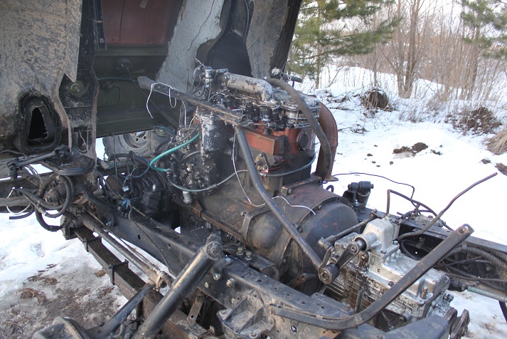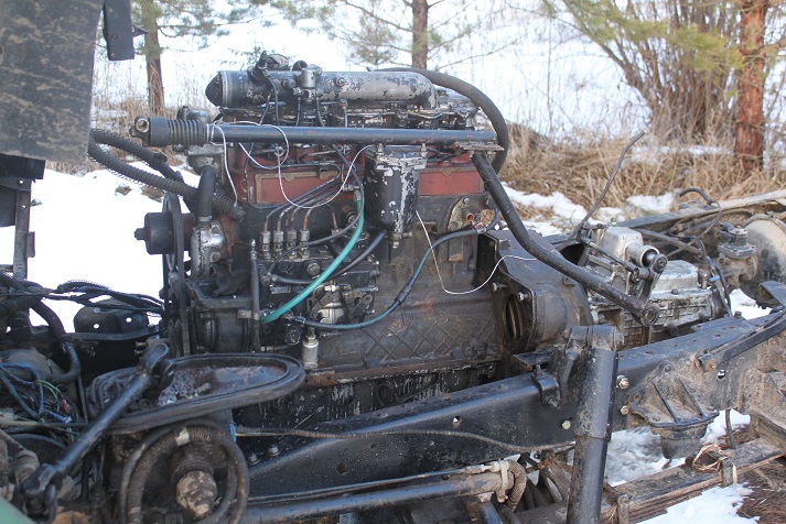 силенок не хватило даже выше рамы поднять мотор с кпп.Договорился на сегодня со знакомым на манипуляторе,он как раз будет сегодня в тех краях,где стоит 66