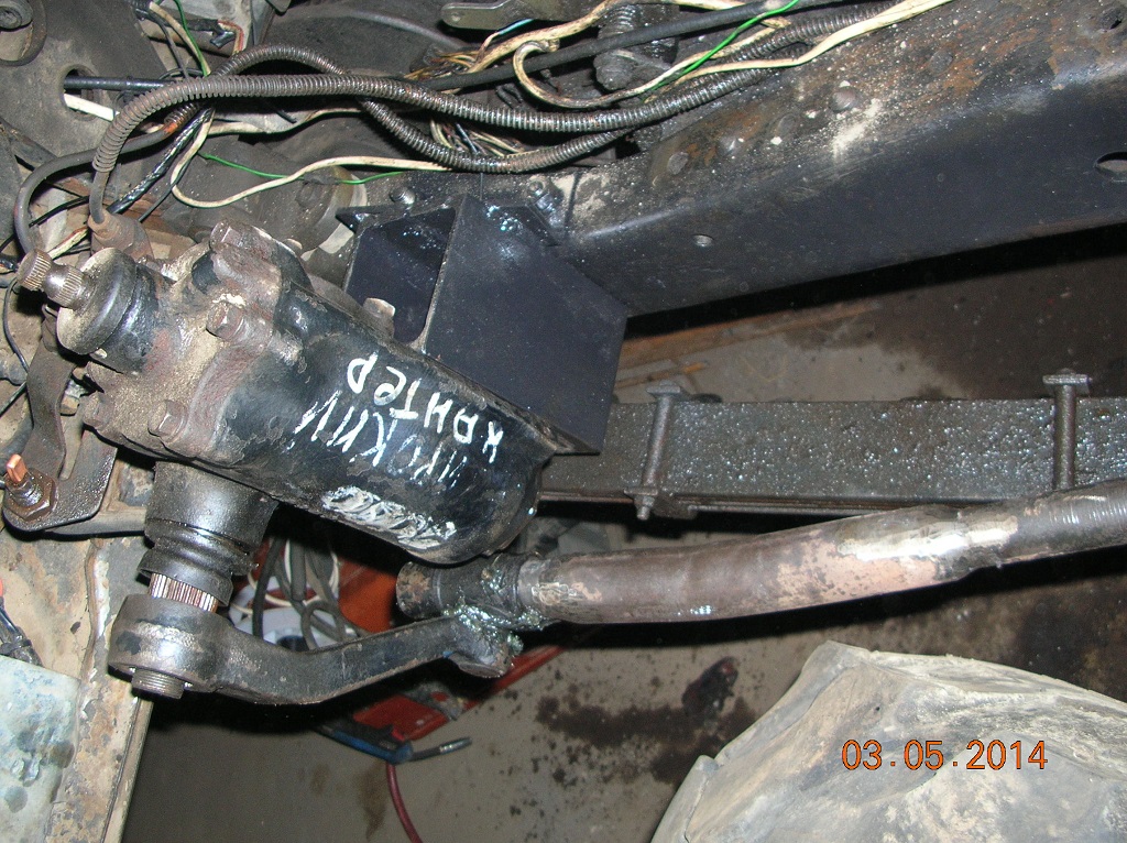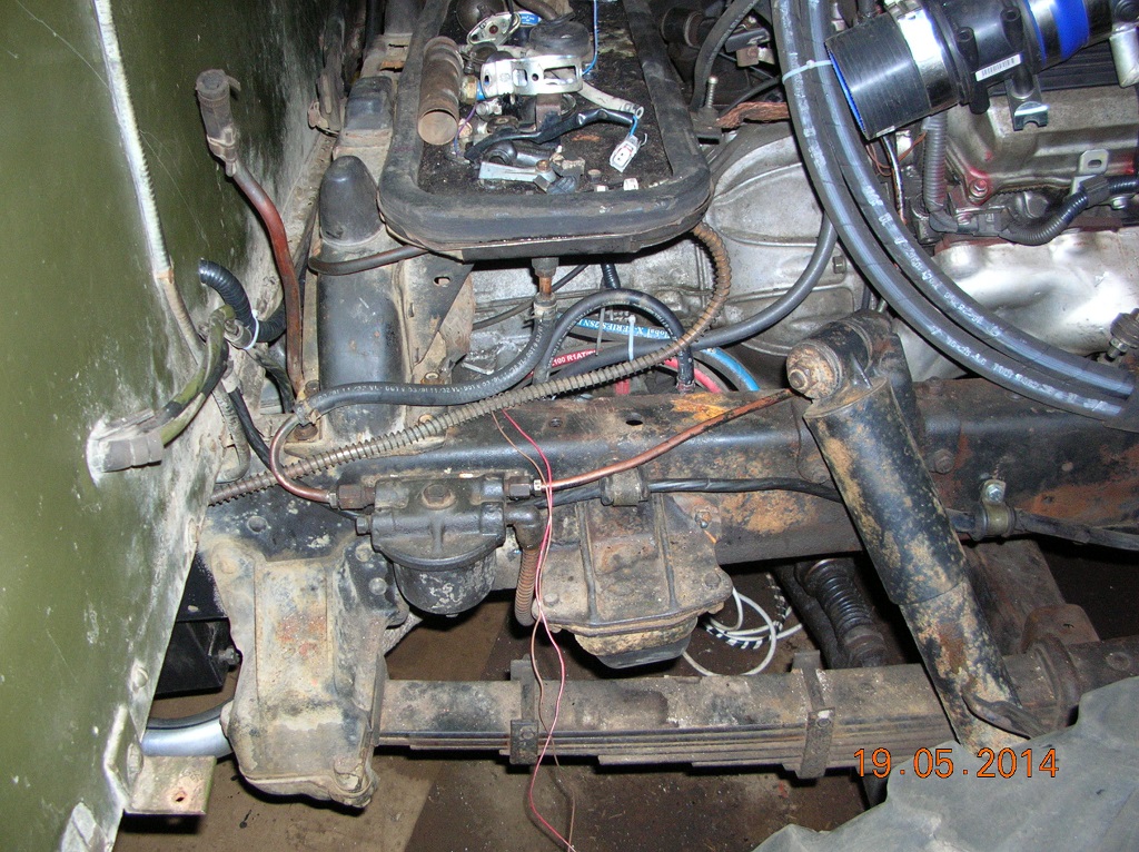 Установлен редуктор с гидроусилителем от Кантера. Установлены топливные баки от ЗИЛ по 170л каждый. Установлены дисковые тормоза, пока впереди (рецепт дисковых тормозов от СанСаныч78 viewtopic.php?f=51&t=10792&start=80). Электростеклоподъемники, центральный замок, сигнализация с дистанционным запуском.